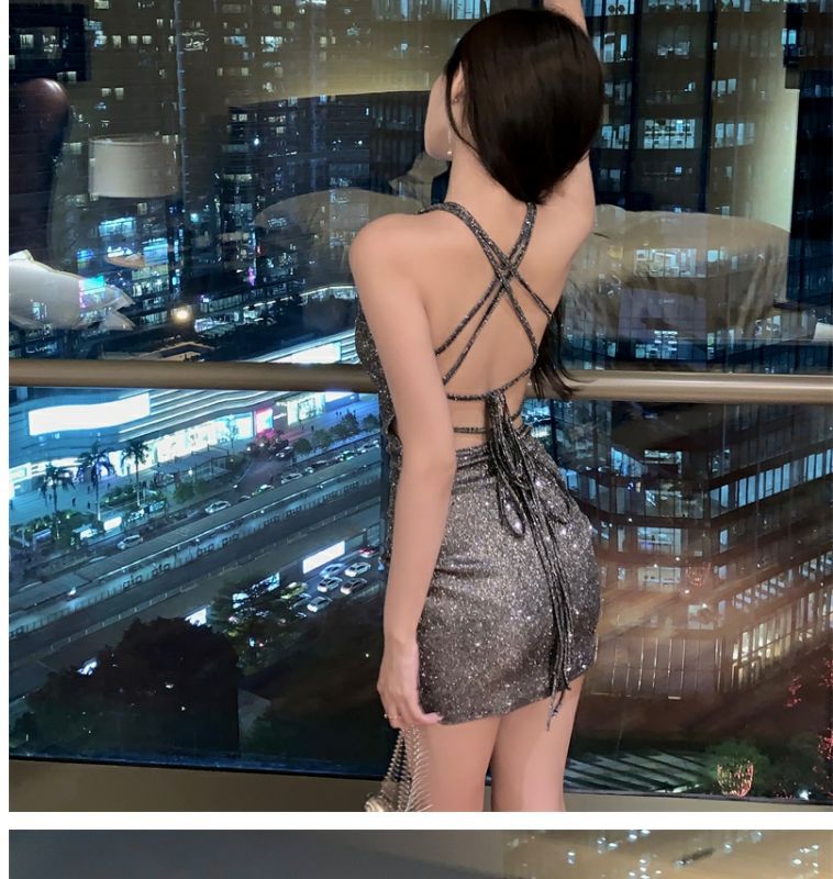 Summer pure desire style elegant sexy backless lace-up sexy hot girl style dress women's small hip skirt